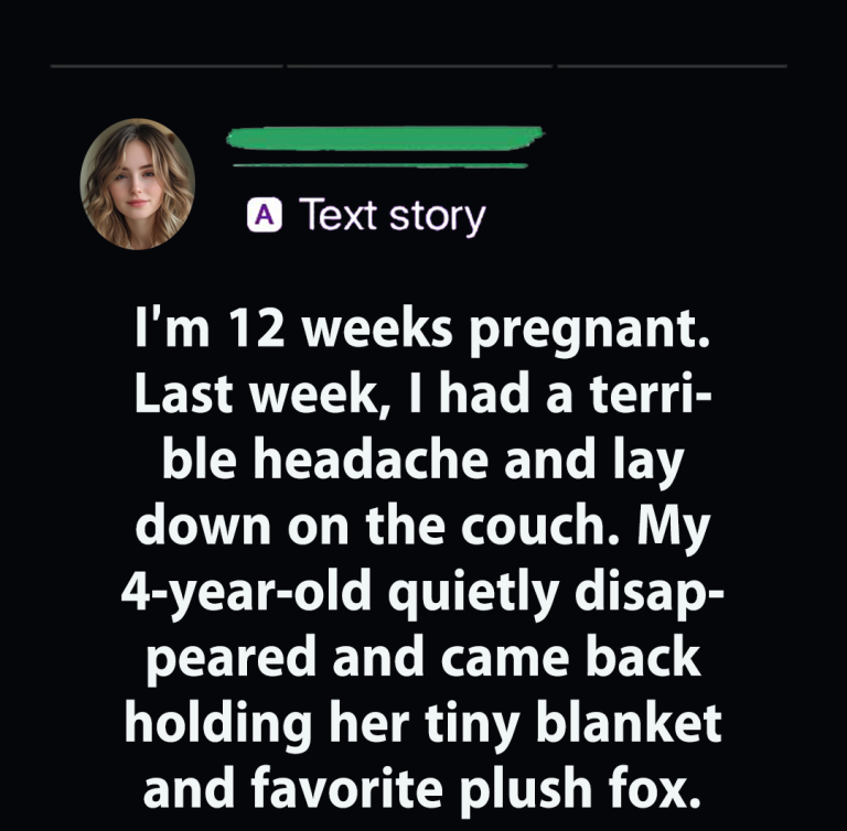- “I’m 12 weeks pregnant. Last week, I had a terrible headache and lay down on the couch. My 4-year-old quietly disappeared and came back holding her tiny blanket and favorite plush fox.