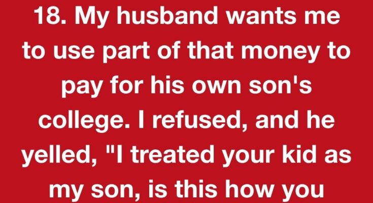 I think this is ridiculous. Giving him a piece of my son’s legi:timate inheritance feels like betraying my child, even if I know he’s sad.By refusing to cover his college expenses, am I being unjust to my spouse and his son?