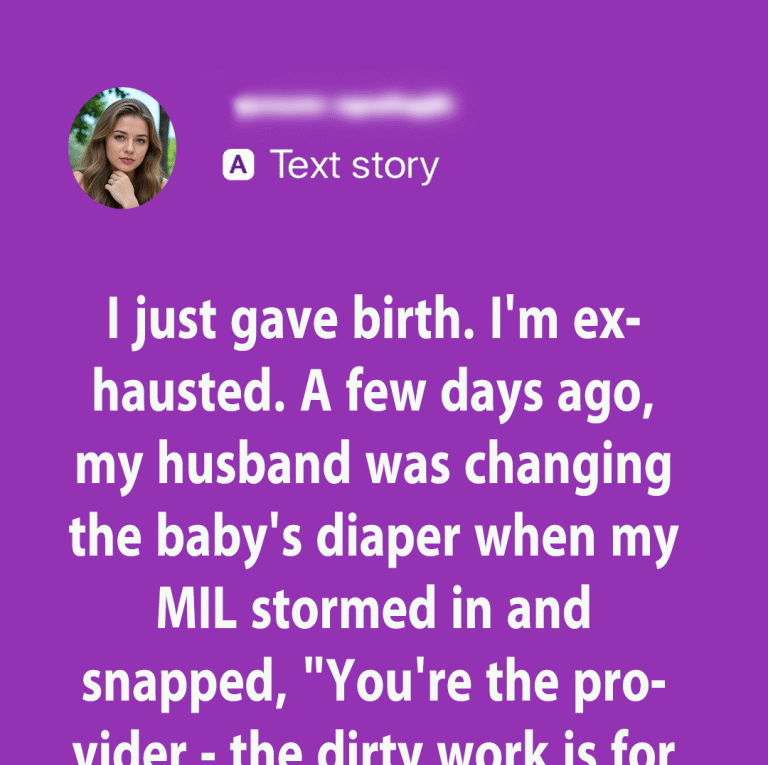 I just gave birth. I’m exhausted. A few days ago, my husband was changing the baby’s diaper when my MIL stormed in and snapped, ‘You’re the provider – the dirty work is for women.’ I froze.