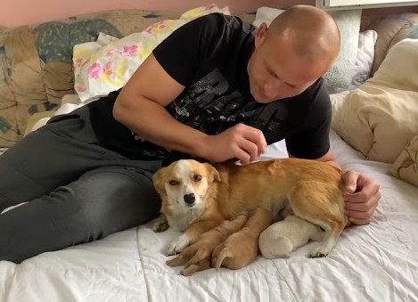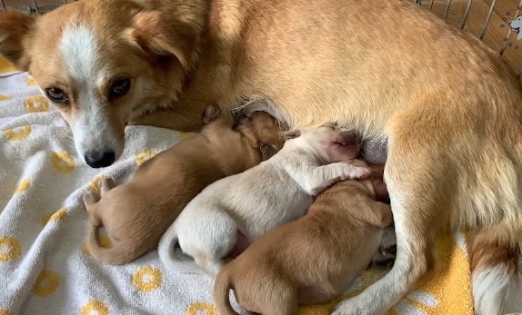 When rescuers came, she was hiding in the grass by the road with her kids, attempting to protect them while waiting for her owners to come for her.
