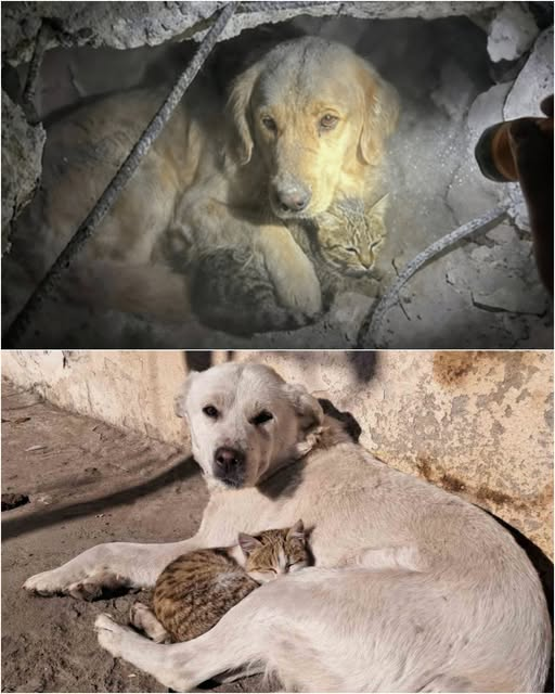 After carefully removing the cat from the rubble, rescuers looked back at the dog, now weary but calm, and understood the silent communication that had taken place. The dog had chosen to risk its life, remaining in a collapsing structure, just to ensure the cat survived. It was a silent act of courage, a testament to the resilience and empathy animals can display even in extreme circumstances.