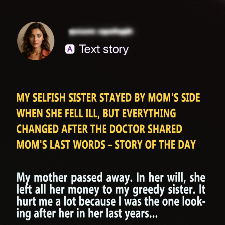Continue readingWhen Mom fell ill, my sister suddenly became the perfect daughter. She moved in with Mom and kept me away,
