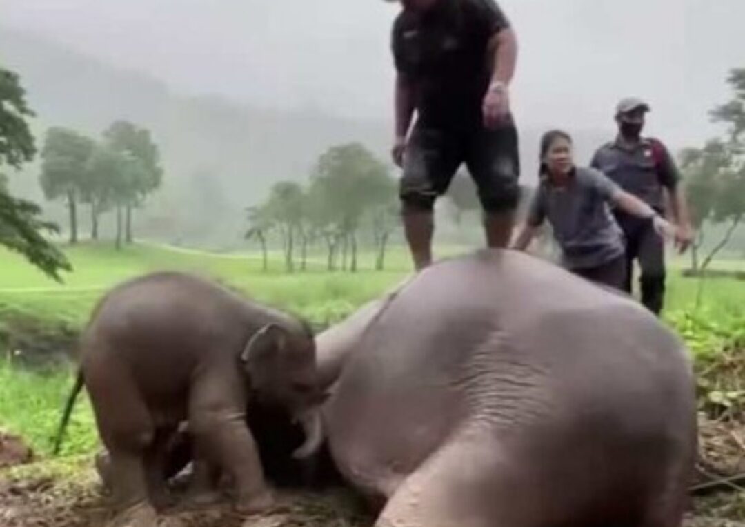 A Mother’s Determination: The Rescue of a Trapped Elephant Pair”